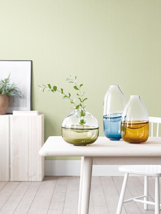 譬如,铺贴牛油果绿色墙布,大面积使用从而打造出平和自然,舒缓雅致的家居氛围。搭配幽深的墨尔本绿餐布,由深到浅的渐变色阶,清新治愈有极具质感。放置纯白装饰品或原木家具,通畅明亮,瞬间提亮空间。